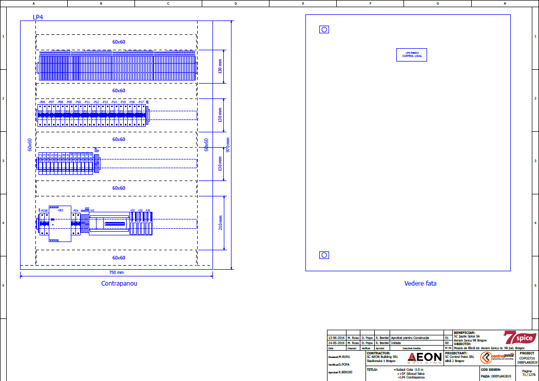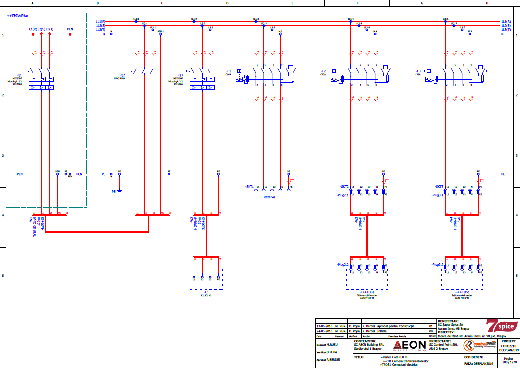 Proiectarea sau modernizarea instalatiilor electrice cu tensiunea sub 1kV utilizand atat solutii tehnice cat si software moderne . Proiectarea se face cu ajutorul softului Eplan.